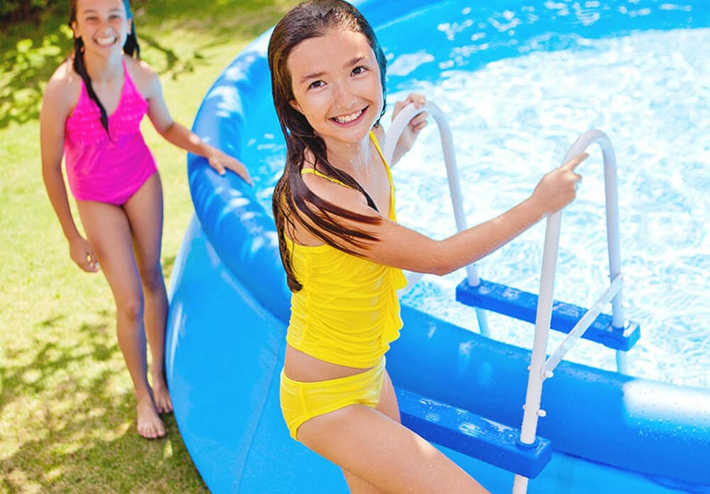 Стремянка предназначена для обеспечения безопасности и подходит для надувных и каркасных моделей бассейнов, высота стенок у которых составляет 91 см.